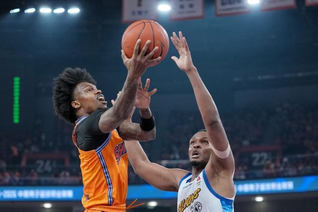 第二节,王哲林和洛夫顿的内线组合配合默契,上海男篮连续得分以43比36领先,对手被迫暂停。洛夫顿抢断发起反击,古德温投中三分球,比分变成48比38。洛夫顿和古德温再次进攻得手,主队已经以52比38领先,客队再次暂停,上半场比分为60比48。